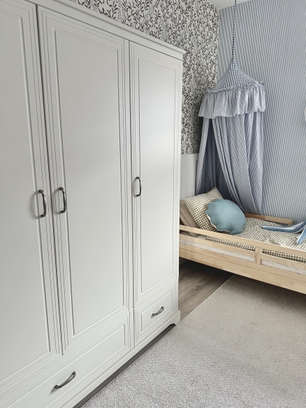 Kolekcja mebli Melody to połączenie klasyki ze stylem rustykalnym, pozwala zaspokoić potrzeby małych i dużych użytkowników, sprawdzi się zarówno w pierwszych latach życia dziecka, jak i u nastolatka. Występuje w dwóch wersjach kolorystycznych: Uniwersalna biel zapewni harmonijne otoczenie, pozwoli ograniczyć bodźce wzrokowe, co jest istotne dla wypoczynku i dobrego samopoczucia dziecka, a gołębia szarość pozwoli urozmaicić stonowane pomieszczenie z jasnymi dodatkami. Kolekcję zdobią delikatne frezy, co nadaje jej elegancji i unikalnego charakteru. Uchwyty to ważny element całej kolekcji podkreślają jej urok , w Melody zastosowaliśmy szerokie uchwyty w kolorze starego srebra współgrające z całą kolekcją. Meble osadzone są na solidnym ozdobnym cokole. Wystrój wnętrza można zaadaptować do potrzeb starszego dziecka, wymieniając niektóre z elementów i zastępując nowymi, bez konieczności wymiany całej kolekcji.